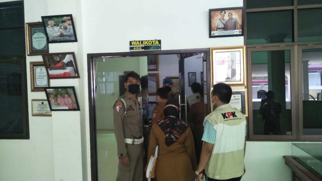Selanjutnya Komisi Pemberantasan Korupsi (KPK) melakukan penggeledahan keruangan kerja Walikota selama Dua Jam lamanya.