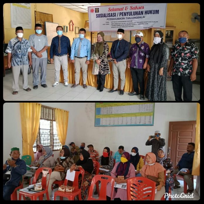 BALAINEWS.CO.ID, Tanjungbalai – Pos Bantuan Hukum Advokat Indonesia Posbakumadin ( Pengacara ) Kota Tanjungbalai berikan penyuluhan Hukum kepada masyarakat Kelurahan Matalasan Kecamatan Tanjungbalai Utara, dan Kelurahan Perwira Kecamatan Tanjungbalai Selatan Kamis (22/7/21)