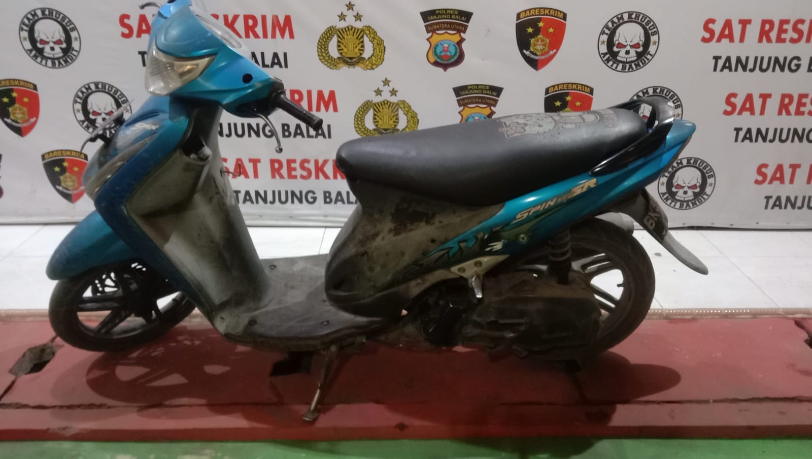 Barang bukti yang diamankan Personil Satreskrim Polres Tanjungbalai yaitu Satu unit sepeda motor Suzuki SPIN 125 No. Pol BK 3177 QAA, warna Biru tahun pembuatan 2010, No. Rangka: MH8CF48CAAJ402976, No. Mesin : F4841D402619, yang dicuri oleh tersangka. (BN/dev)