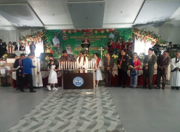 Perayaan Natal umat Kristiani Kota Tanjungbalai di gedung serbaguna Khatolik Jalan Alteri Kelurahan Sirantau Kecamatan Datuk Bandar Kota Tanjungbalai, meriah.
