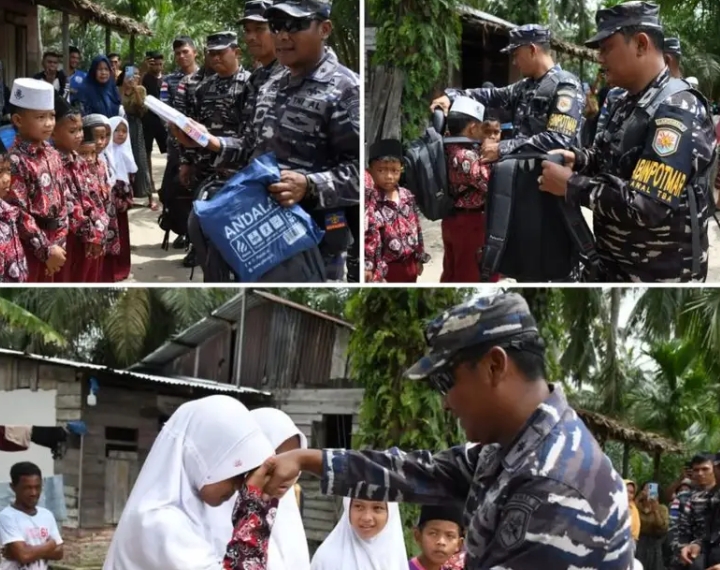 Mendukung semangat belajar bagi anak anak sekolah yang berada di pesisir Sei Kepayang, TNI Angkatan Laut melalui Posal Bagan Asahan Lanal TBA memberikan hadiah kepada anak-anak di Desa Sei Paham, Kecamatan Sei Kepayang, Kabupaten Asahan, Rabu (19/2/2025).