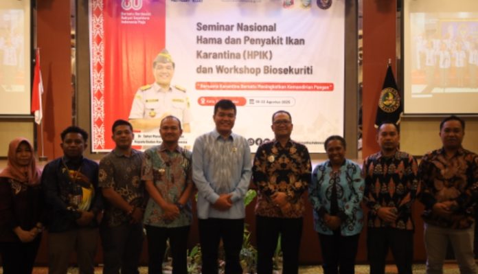 BALAINEWS.CO.ID, Tanjungbalai – Badan Karantina Indonesia (Barantin) menggelar Seminar Nasional Hama dan Penyakit Ikan Karantina (HPIK) dan Workshop Biosekuriti dengan tema “Bersama Karantina Bersatu Meningkatkan Kemandirian Pangan”. Kegiatan nasional ini dilaksanakan di Hotel Grand Singgie Kota Tanjungbalai, 19–20 Agustus 2025, dengan menghadirkan jajaran Barantin, Pemerintah Kota Tanjungbalai, serta 38 Kepala Unit Pelaksana Teknis (KUPT) Karantina se-Indonesia.
