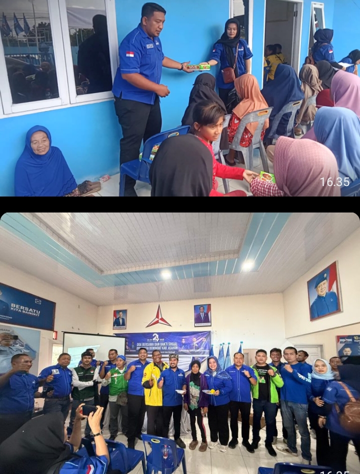 Sebelum pembagian ratusan paket sembako kepada masyarakat yang kurang mampu , menyanyikan lagu Indonesia Raya dan lagu kebesaran Partai Demokrat secara serentak menambah suasana hikmat dan kata kata sambutan hangat dari sejumlah pengurus partai ditutup dengan Do’ a oleh Muhamad Sayid Muhammad Musy yang memohon kepada Allah SWT agar Seluruh Pengurus Partai Demokrat dari pimpinan pusat hingga daerah terus diberi kekuatan semangat dan semoga dirihoi Allah SWT segala bentuk pengabdiannya di Masayarakat dalam menemban sejumlah Amanah dari rakyat .