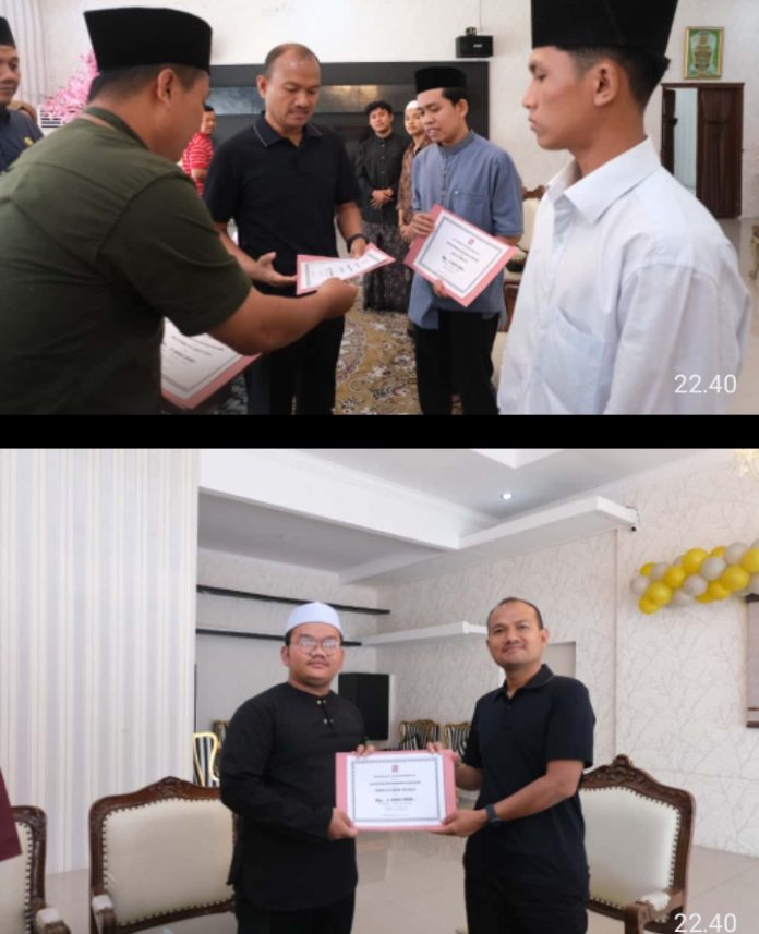 BALAINEWS.CO.ID,TANJUNGBLAI – Wali Kota Tanjungbalai, Mahyaruddin Salim menyerahkan voucher bantuan beasiswa pendidikan kepada 9 orang mahasiswa yang lolos seleksi untuk melanjutkan studi ke Universitas Al-Azhar Kairo, Mesir, tahun 2025.