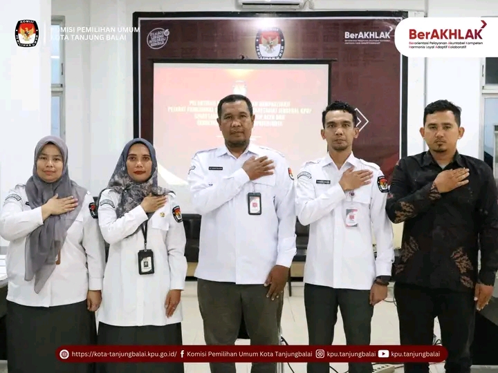 BALAINEWS.CO.ID, TANJUNGBALAI – KPU Kota Tanjung Balai menyelenggarakan kegiatan Pelantikan dan Pengambilan Sumpah/Janji Pejabat Fungsional Penata Kelola Pemilu (PKP) Ahli Pertama di lingkungan Sekretariat Jenderal KPU Republik Indonesia.