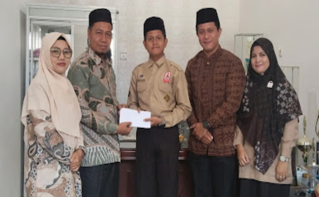 ” Kami melepas secara resmi Rayhan untuk mengikuti karantina sampai pengumuman nanti. Semoga seluruh proses dapat dijalani dengan baik dan memberikan hasil terbaik pula,” ujar Kepala Sekolah MTSN Rizlan.