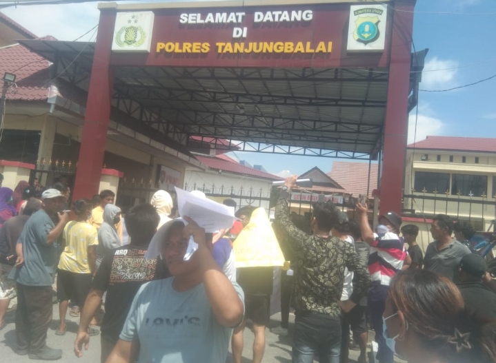 BALAINEWS.CO.ID, TANJUNGBALAI – Lepaskan goliong… Lepaskan… Goliong… Lepaskan Goliong. Teriakan puluhan massa yang tergabung dalam Otoritas Masyarakat Kota Tanjungbalai (OMAK) menyatakan sikap dugaan tindakan penganiayaan dan kriminalisasi oleh oknum kepolisian Polres Kota Tanjungbalai, Rabu(22/04/2026).