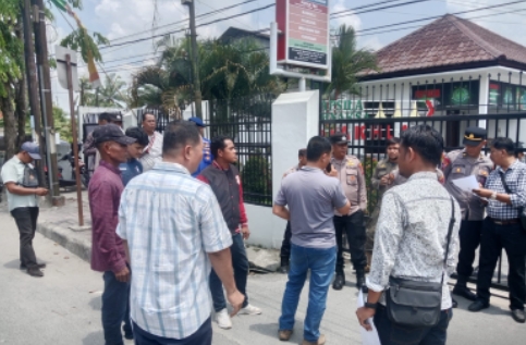 Para pengunjuk rasa mulai tiba di kantor Kejari sekitar pukul 11.20 WIB, setelah sebelumnya berkumpul di Lapangan pasir sultan rahmadsyah.
